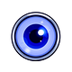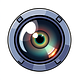 single large cyber lens eye with reflection highlight, circular metallic rim, glowing center, bold cartoon shading, isolated on white background
