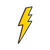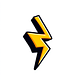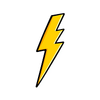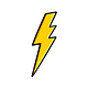 simple cartoon lightning bolt sticker – bright yellow, thick black outline, flat vector style, white background