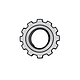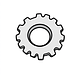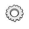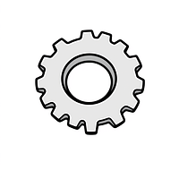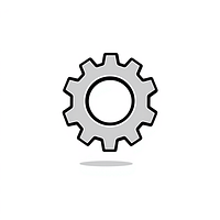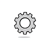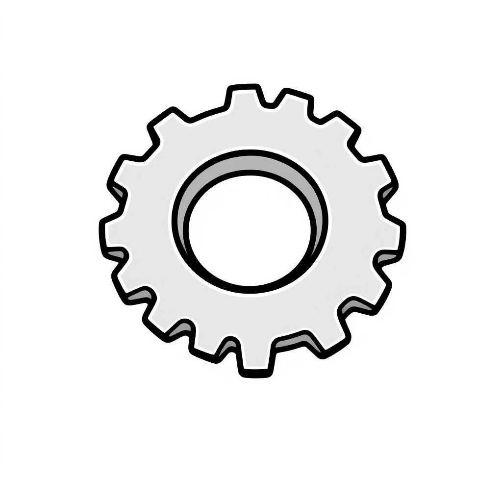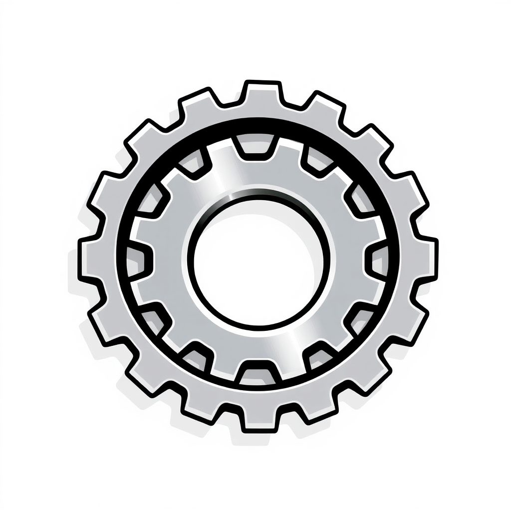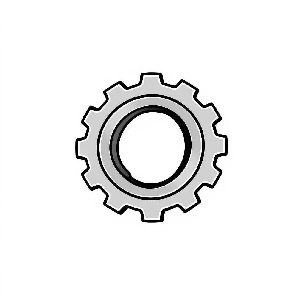 small icon of a floating metal gear – simple vector drawing, silver and black outline, flat color design, white background