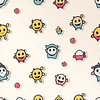 Create a seamless repeating background pattern for a sticker sheet featuring colorful, cartoon-style stickers. The background should be subtle and not distract from the designs — use light neutral tones (e.g., soft beige, pale gray, or off-white) with a faint geometric or abstract texture, such as soft gradients, dotted patterns, or minimal wave lines. Avoid strong colors or sharp contrast. The pattern should tile seamlessly and enhance the overall presentation without overpowering the stickers. Studio lighting, flat vector style, clean print-ready surface.