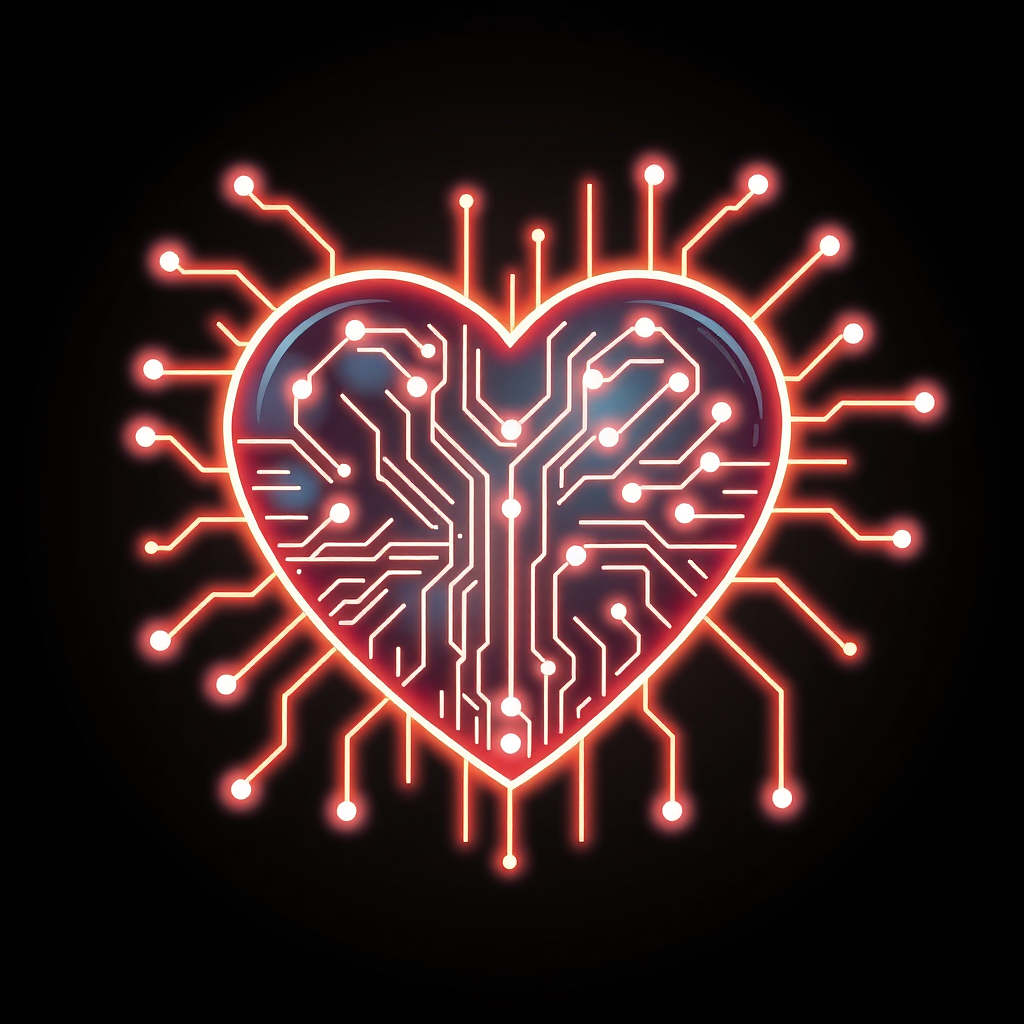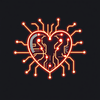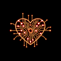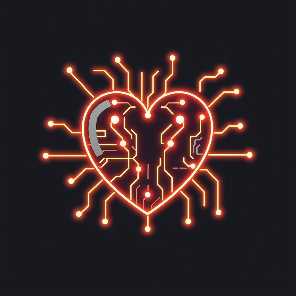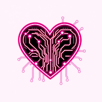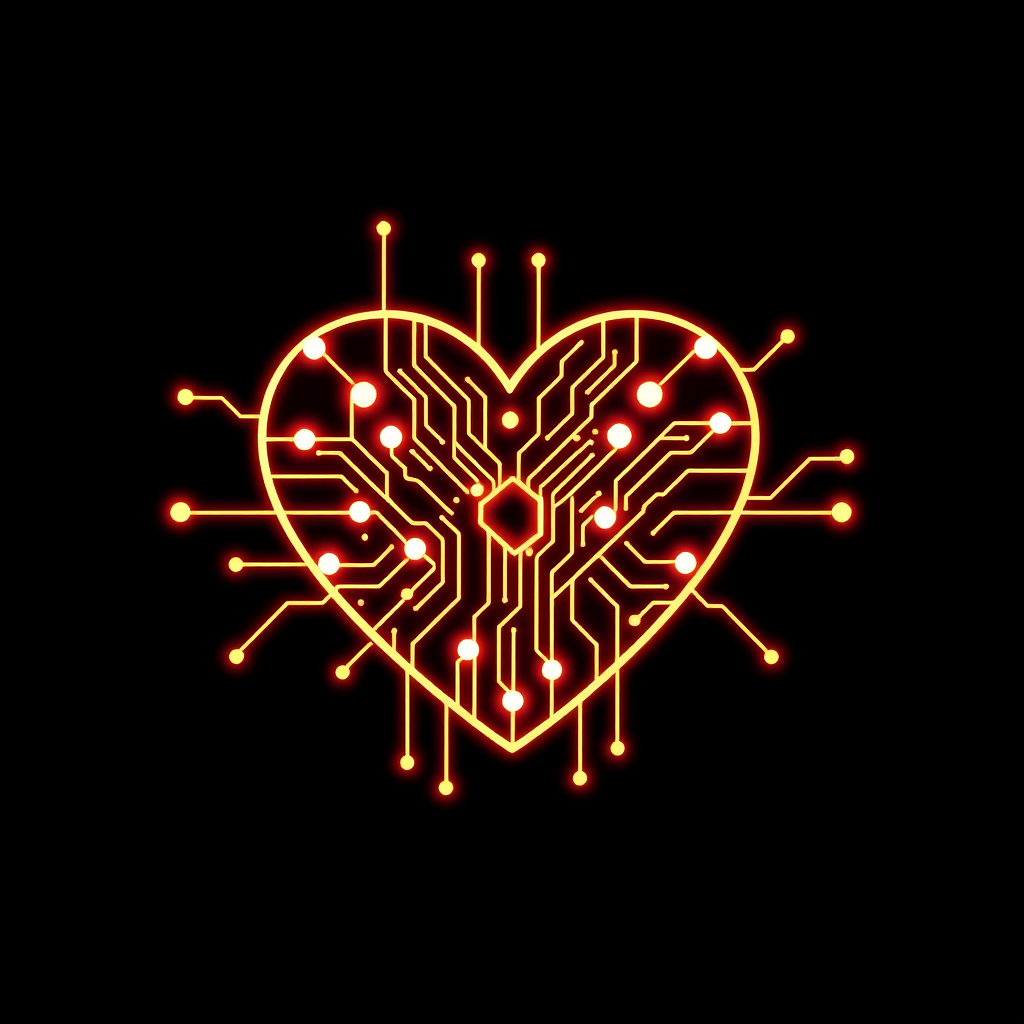 Cyber circuit heart sticker, glowing tech lines, modern digital style, thick outline, clean vector look, transparent background, no brand