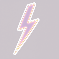 Digital lightning bolt sticker, neon energy style, bold shape, thick white outline, transparent background, high contrast, no text