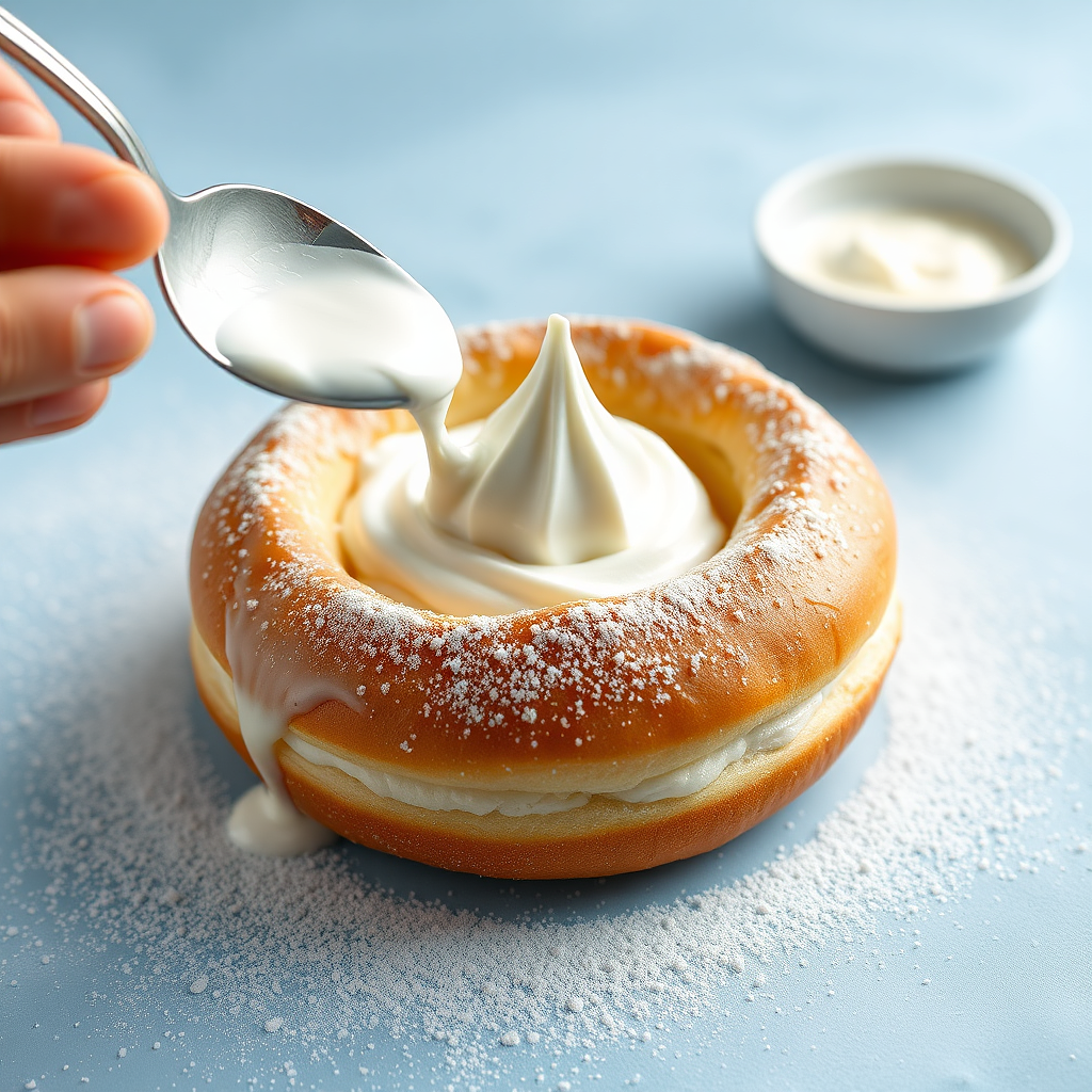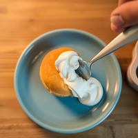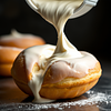 a donught is getting filled with whippedcream