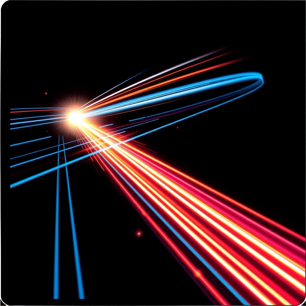 Speed of Light Explorer Description: This sticker celebrates the incredible speed at which light travels. The dynamic motion lines and glowing light beam symbolize photons racing through space at nearly 300,000 kilometers per second. The design represents the role of light in high-speed data transmission and the future of ultra-fast optical computing.